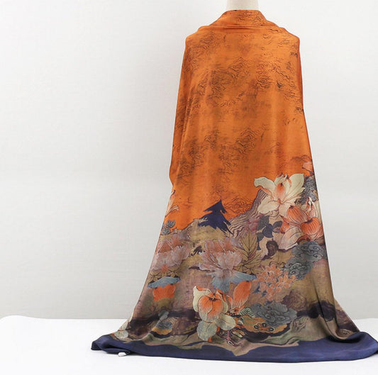 Ancient Paintings Satin Pake Muu (Green, orange, red)