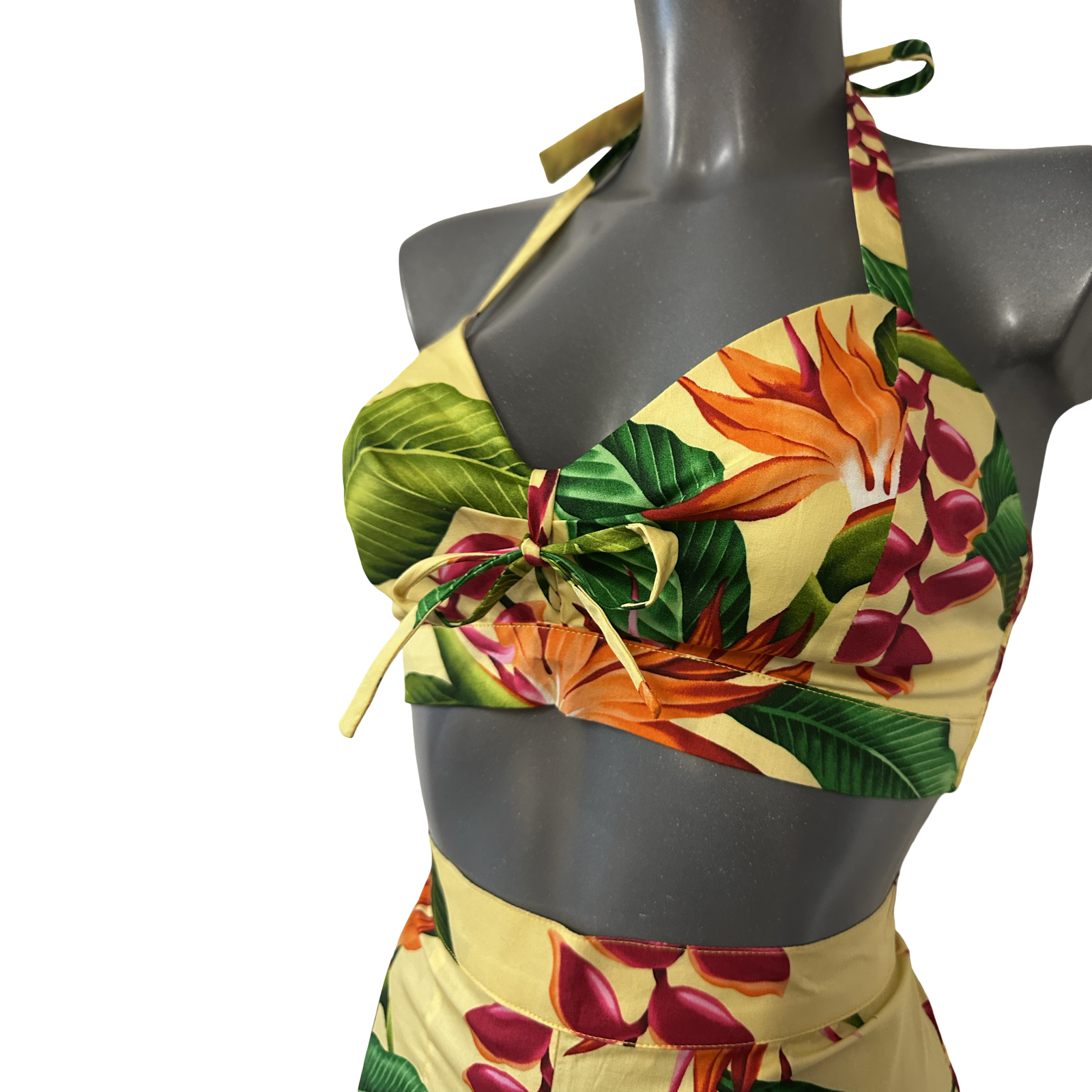 The super sweet Catarina sun top bralette comes with shirring panels to make the design more comfortable for varying sizes and a halter tie neck feature.